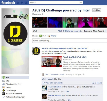 ASUS DJ Contest d:evolute RSS Profil d:evoluteEinträgeNetzwerkKontakt ASUS DJ ContestAngabe freigestellt zurück weiter 0 For Asus DJ Challenge powered by Intel we built another contest Appon Facebook where users could upload remixes to soundcloud and rate them. ASUS DJ Contest Angabe freigestellt zurück Teilen Xing Facebook Twitter LinkedIn Pinterest Whatsapp Per E-Mail weitersagen dasauge Andere Konten Einloggen mit deinem Konto bei… …oder OpenID: Registrieren Login vergessen? Mein Profil Werkschau Netzwerk Einladen Profillink Suchagenten Mitgliederbereich Ausloggen