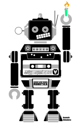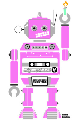 I knew that other artists would probably submit your standard retro metal toy robot circa 1950s… But I thought, why not take that concept one step further by creating a graphic that was a little more hip and that could be printed on various types of products. Thus, I decided to bring the old metal toy robot from the 1950s into the 1980s.