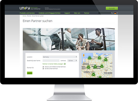 Mit dem von MMK entwickelten und gehosteten Partner Locator können Kunden von Unify schnell und bequem aus tausenden Kontakten weltweit den geeigneten Unify Partner in der Nähe finden, dessen Profil aufrufen und unmittelbar mit ihm in Kontakt treten.